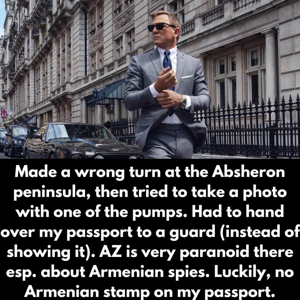 Arousing suspicion of possibly being a spy is also a nice way to increase the excitement of an adventure, though it seems traveling from Armenia could have brought a potentially higher risk to the OP’s life. Definitely an interesting thing to hear about, though.